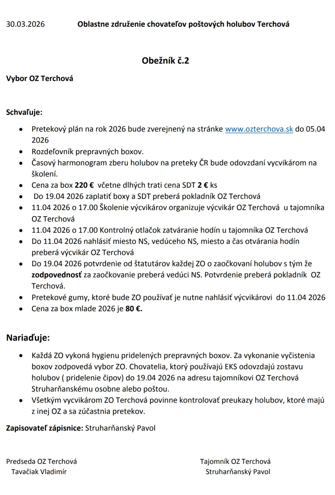 Vítame Vás pri prehliadke webovej stránky oblastného združenia chovateľov poštových holubov Terchová. V súčasnosti štruktúru OZ tvoria chovatelia evidovaný v šiestich základných organizáciách a to: